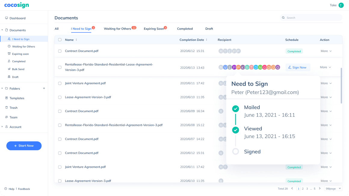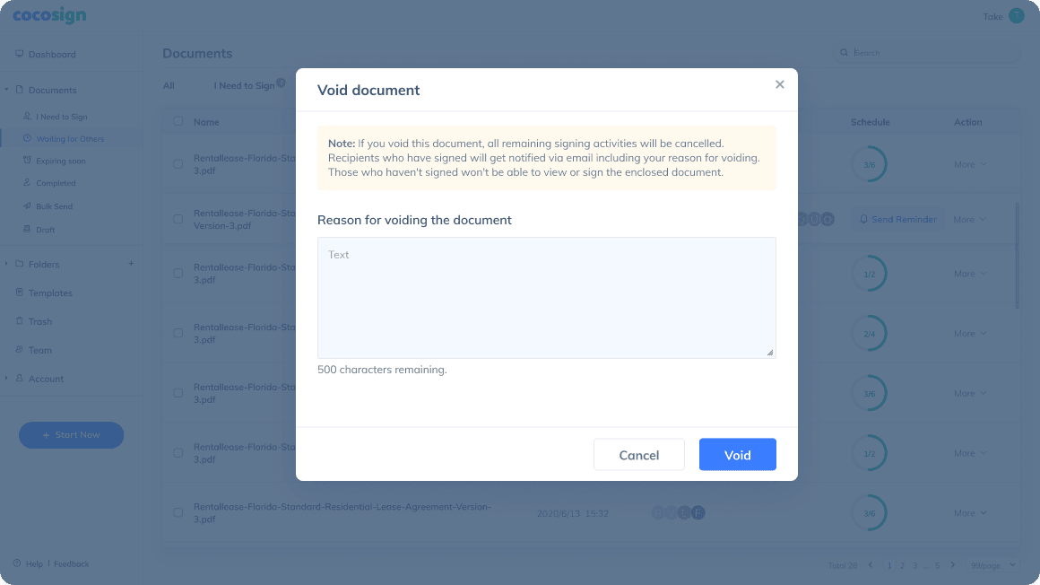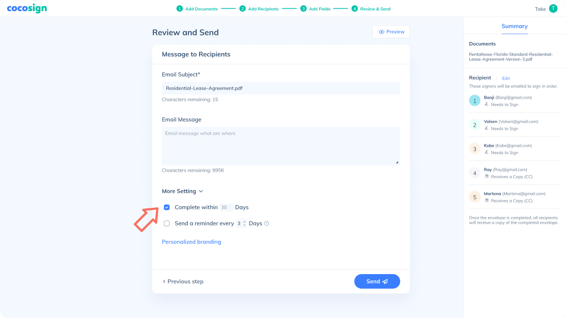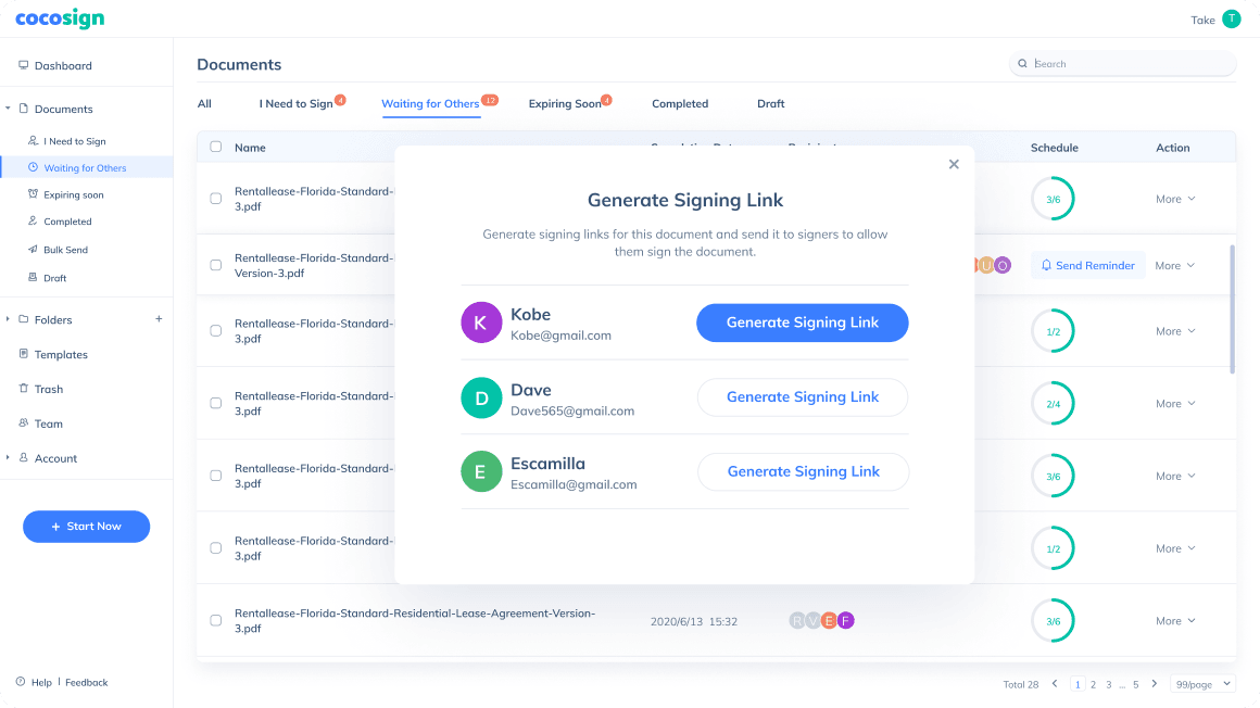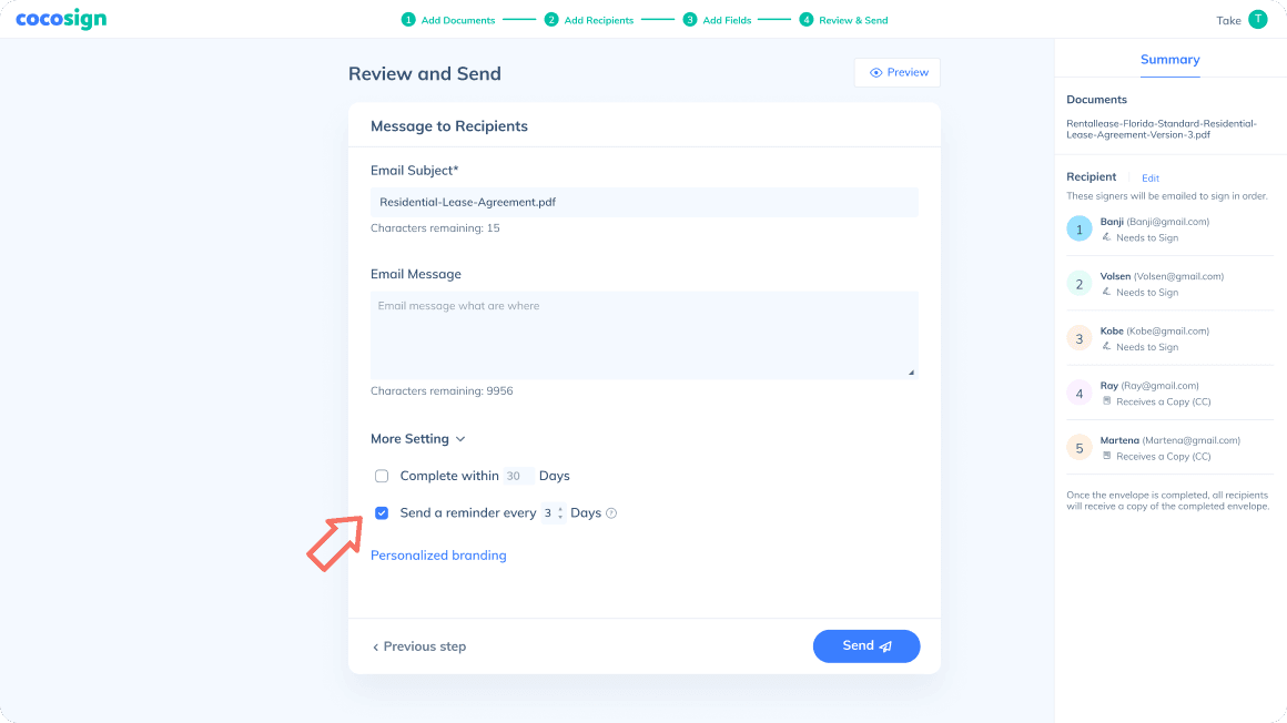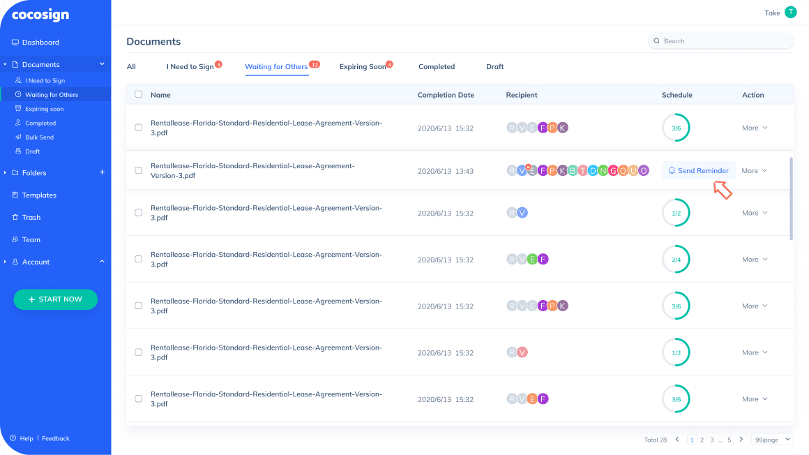 CocoSign auto-sends reminders to those who haven ’t signed the file at pre-set intervals.