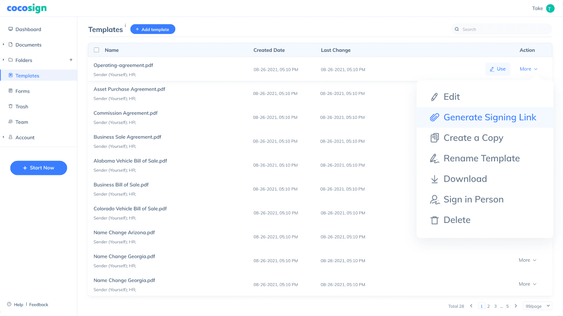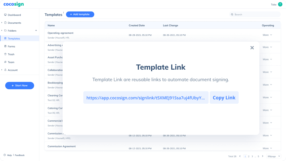 Template signing link
