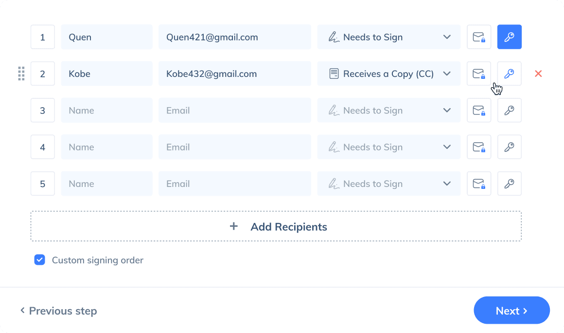Customize a signing order for your signers to have them sign in succession.