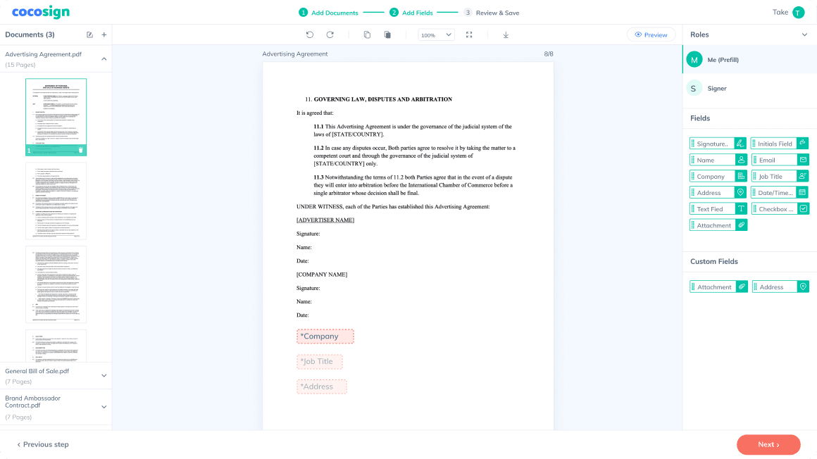 In addition to e-signatures or initials, you can also add additional information like company, job title, address, etc.